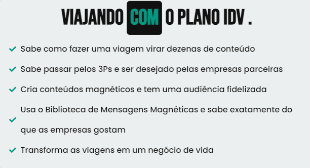 Depois que começamos a produzir conteúdo de viagem, mesmo as perto de casa, descobrimos o caminho exato para transformar isso em um estilo de vida: O PLANO IDV.